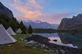 روز هفتم - دریاچه آلای بزرگ: صبح خیلی زود، کوهنوردی به سمت گذرگاه چیمتارگا (۴۷۵۰ متر) را آغاز میکنیم و سپس به سمت دره زندان ادامه میدهیم. کمپ خود را در ارتفاع ۳۱۰۰ متری در کنار دریاچه آلای بزرگ برپا میکنیم که شاید زیباترین دریاچه در کوههای فان باشد. (۱۴ کیلومتر، ۶-۷ ساعت، +۲۵۰ متر، -۹۶۰ متر) اقامت: چادر |