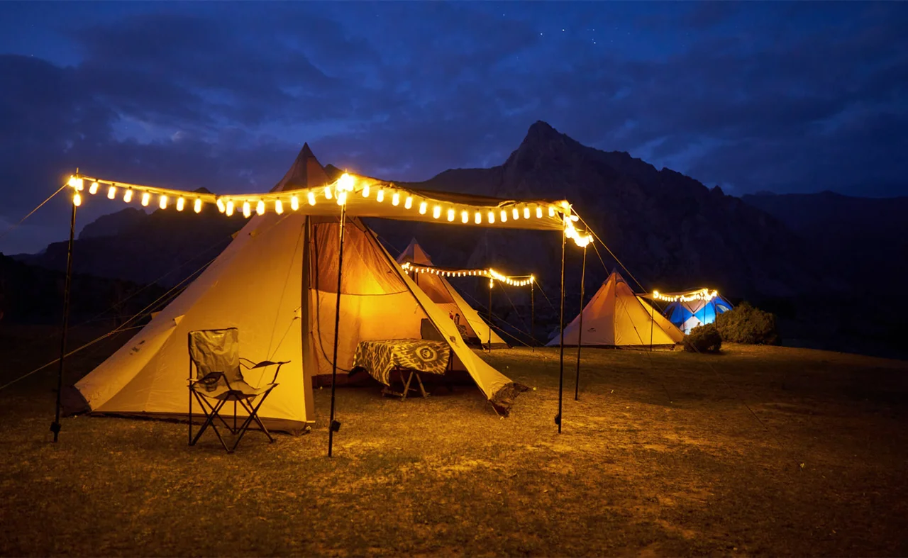 ![]() هتل (HOTEL) این سفر شامل اقامت در هتل یا مهمانخانه در شهرهای مبدأ و مقصد است. | ![]() چادر زدن (TENT CAMPING) این سفر شامل حداقل یک شب اقامت در چادر است. هر عضو سفر باید کیسه خواب خود را همراه داشته باشد، اما تمام چادرها و زیراندازها ارائه میشود. | ![]() اسکان ساده (BASIC LODGE) این سفر شامل اقامت در محلهایی با امکانات اولیه است. کیسه خواب لازم است و امکانات محدودی در دسترس است. | |